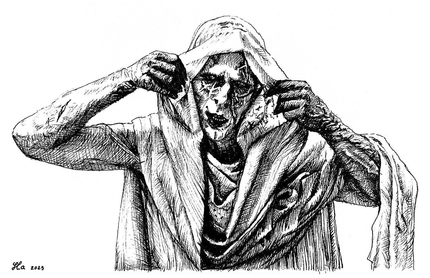 Dibujo a tinta sobre papel 12,5 x 7,5 cm del reto 365 días dibujando.
