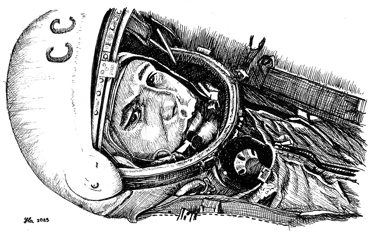 Este dibujo esta inspirado en Yuri Gagarin que se convirtió en el primer humano en poder ver la Tierra desde el espacio el 12 de abril de 1961.