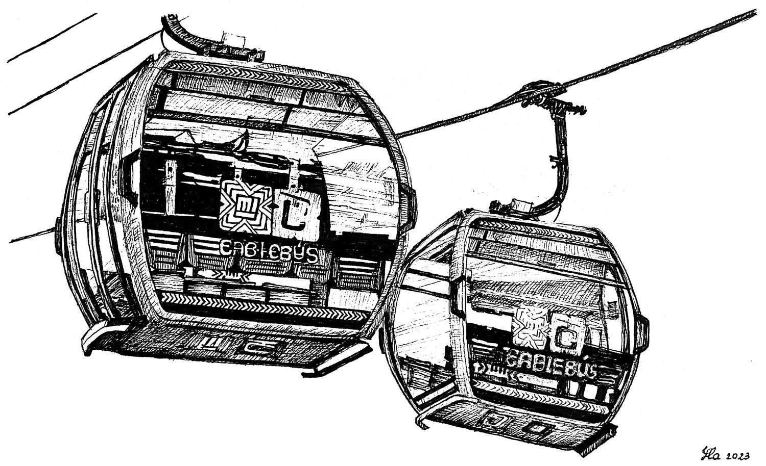 This drawing is inspired by the Mexico City Cablebús, whose first line was inaugurated on July 11, 2021.