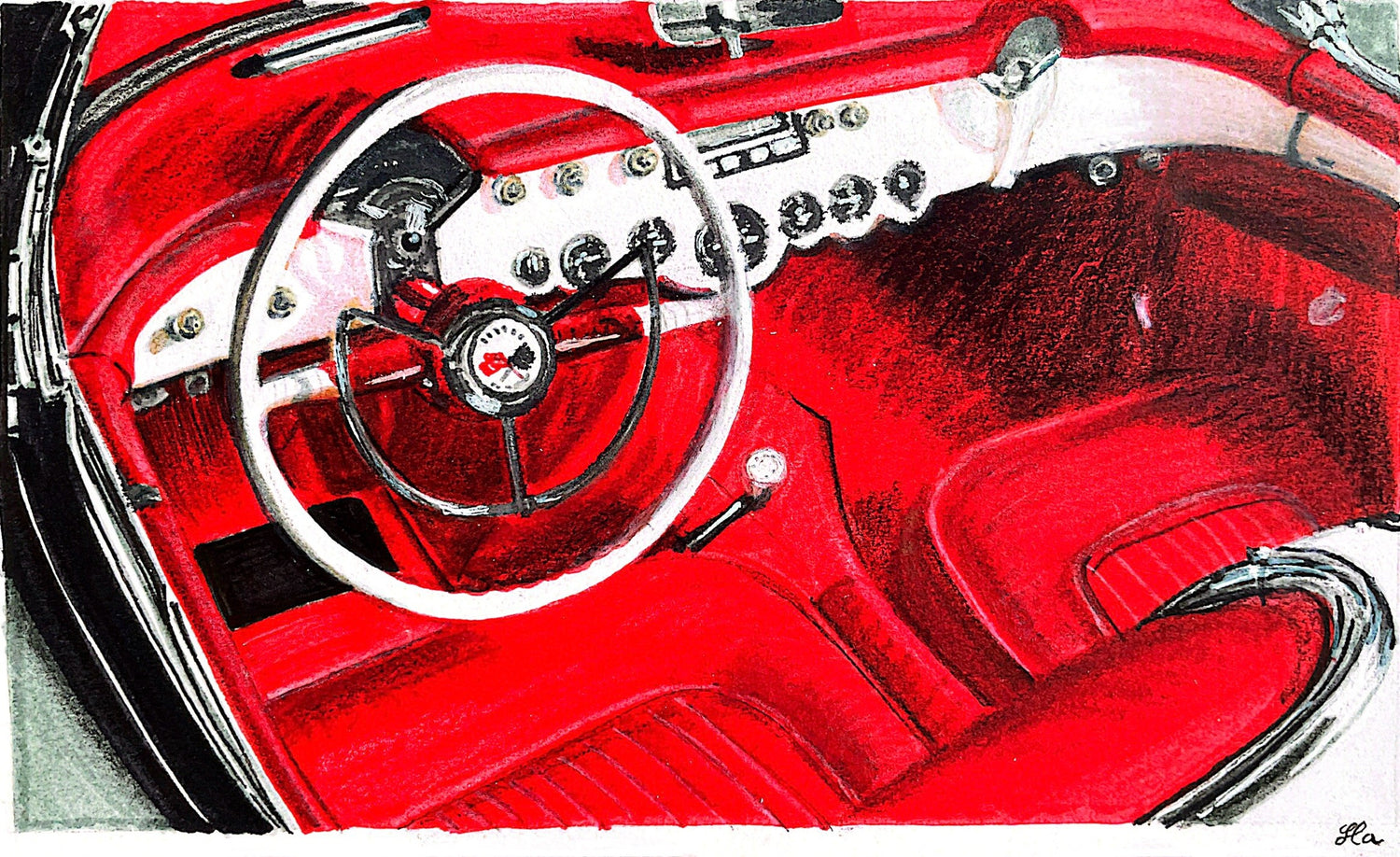 This drawing is inspired by the first production Corvette that was built on June 30, 1953 in Michigan, and only 300 were built, almost by hand and all on a pilot line.