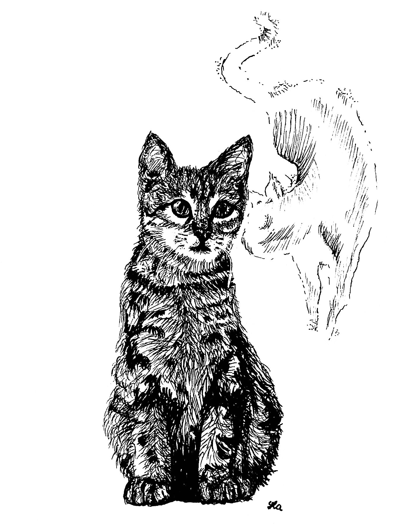 This drawing is inspired by World Cat Day on February 20th. Although there are other commemorative days throughout the year, the date chosen is to remember Socks, the pet of former US President Bill Clinton, who died on February 20, 2009.
