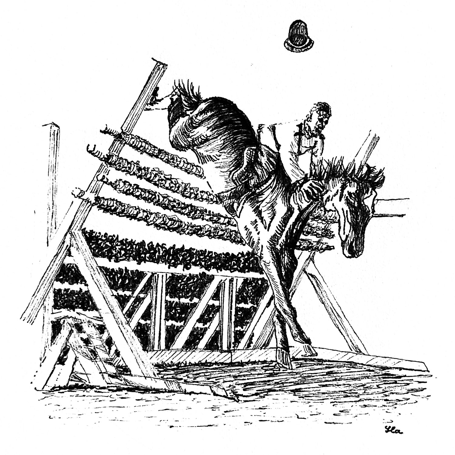 This drawing is inspired by “Huaso”, the Chilean FSI horse, with which Army Captain Alberto Larraguibel Morales broke the world record for high jump on horseback on February 5, 1949. There he achieved a jump of 2.47 meters in height, breaking the previous record of 2.44 m.