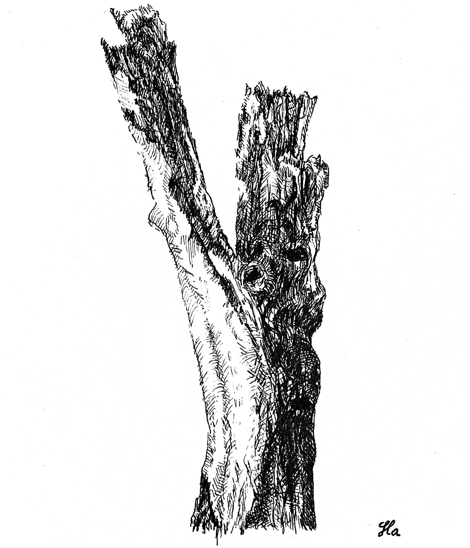 This drawing is inspired by the incident that happened on August 18, 1976 in the Korean Demilitarized Zone (DMZ). It started with the cutting down of a tree planted by Kim Il-sung (the grandfather of the current leader, Kim Jong Un), where during a tree-pruning operation in the DMZ, American and South Korean soldiers encountered North Korean soldiers. A verbal conflict, over cutting the branches of that tree, escalated until a North Korean soldier attacked with an axe, killing two American soldiers and injuring four more.