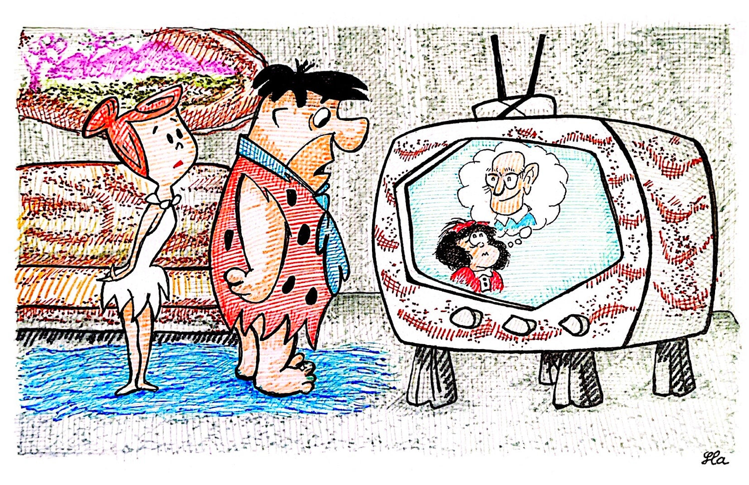 This drawing is inspired by the date The Flintstones aired, September 30, 1960, and also on that same day in 2020, comedian and cartoonist Quino died.